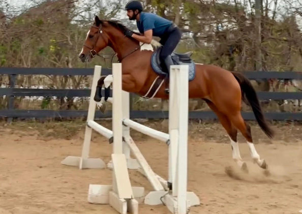 Carrera is a flashy paint mare that will give you whatever speed you’re looking for. She was ridden Western on the trails before her arrival with us and English ever since, and has jumped everything from small crossrails to 2’6. Stands well for the farrier, bathes, ties, picks up all four feet, blankets, easy to catch, and has good ground manners. She is stalled at night, goes out in a herd of mares during the day, and generally gets along well with others. She is obedient but needs a rider with confidence and a soft hand, and will do anything you ask so long as you’re sure when you ask her. We’re sad to see her go, but she’s just not a great match for her owner. UTD on shots, deworming, Coggins, teeth, and only wears front shoes.