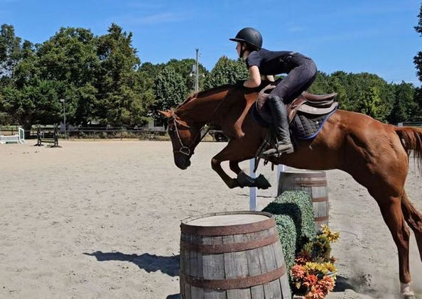 AQHA Chestnut Mare. 15 hds World Class Pedigree. Years of professional training. Shown. Rides English, Western, Bareback and trails. Even bridleless: Arena and trails. Easy to jump, brave and smooth. Moves off leg, side passes, lateral yields, picks up leads very easy. Lopes around in your hand. Handy broke and can take a joke. Uncomplicated. So Much Fun To Ride! Safe on trails, with traffic and even with trains going overhead. Perfect first horse, lesson horse or show horse. American Quarter Horse Association registered, with ZIPPO PINE BAR, ZIPS CHOCOLATE CHIP and DOLLIE PINE right on her papers! Her sire is Dont Skip Zip! She is well bred and has tons of potential in many disciplines, including a great 4H all-around mare. She has been hauled across the Carolina mountains and trail ridden by seniors. She is calm, patient and forgiving. Has a slow jog and hobby horse lope. One hand neck reins, side passes, takes her correct leads, stops and backs with ease. Rides out alone, leads and follows. Non-spooky, non-forward and non-aggressive. Crosses traffic, water and bridges. Excellent ground manners. Stands to be groomed, tacked, mounted, for farrier, etc. Easy to catch from any where in the pasture, easy to handle and easy load. Never offered to kick, bite, buck, rear, crib, nor weave. Great feet. We only have shoes on her for the rocky terrain, should be a easy transition to barefoot if desired. Vet check on file and available. Also baseline radiographs hocks and feet. Sound. No vices. KENOSHA , WI But shipping can be arranged anywhere. Matching Happy Homes Since 1994.